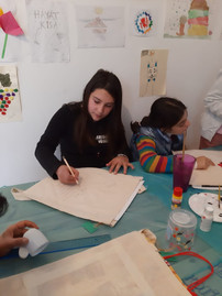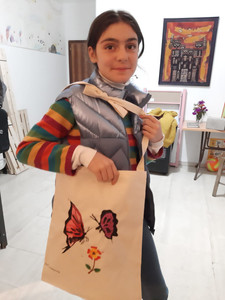 Through our friend and co-worker Ute, we met Lida from Afghanistan a few weeks ago. She is an artist and paints impressive pictures on the subject of flight. She also paints fabric bags, and last week we had the pleasure of welcoming her to our centre, where she showed the children how to create their own bags. The children created fantastic works, a great joy for everybody! Thanks Ute, thanks Lida!